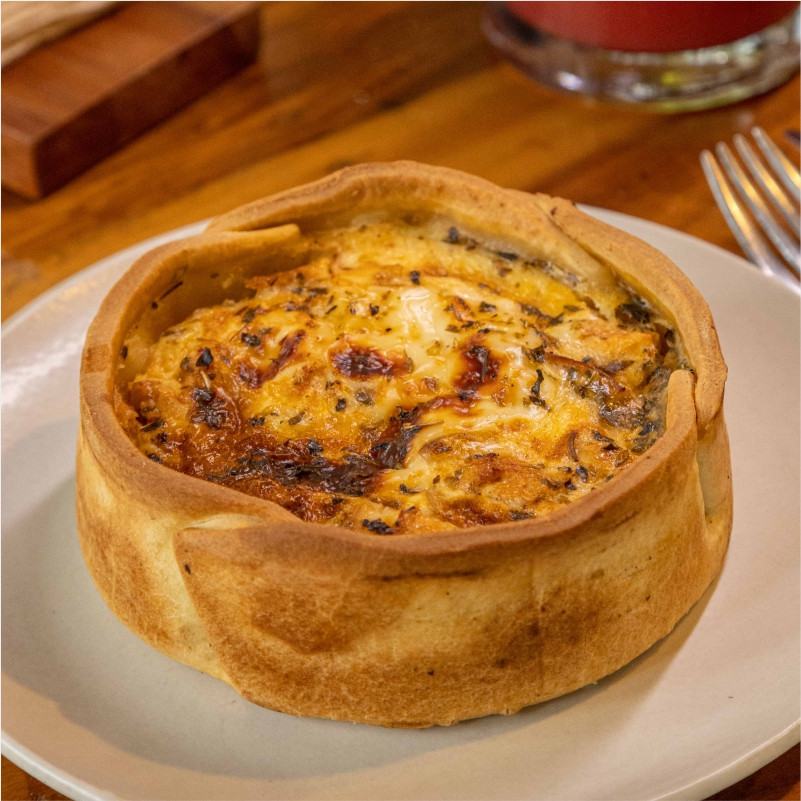 Nuestra tarta de pollo es ya un clásico de KARU. La hacemos con masa artesanal y el pollo lo cocinamos condimentado y luego a la mezcla se le agrega queso Catupiry y ricota. Esta lista para comer, pero si la metes al horno por 5 minutos, queda perfecta!