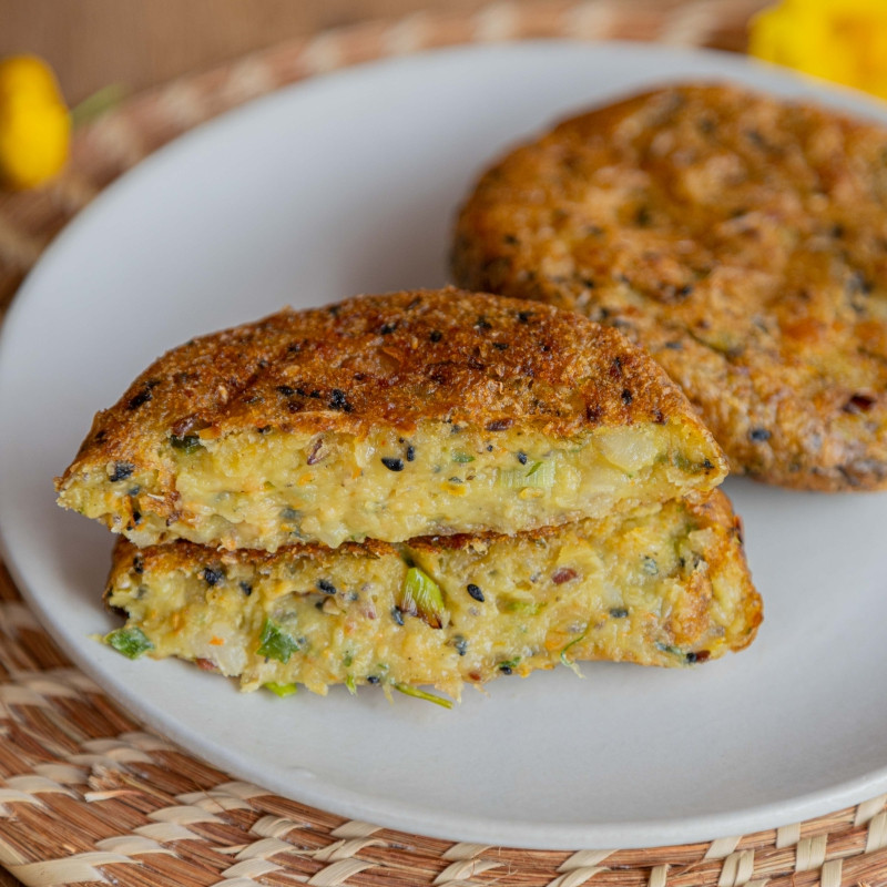 Otra versión vegetariana del pajagua a base de mandioca, cebollita, garbanzos y mix de semillas. Aclamada por degustadores vegetarianos y no vegetarianos.