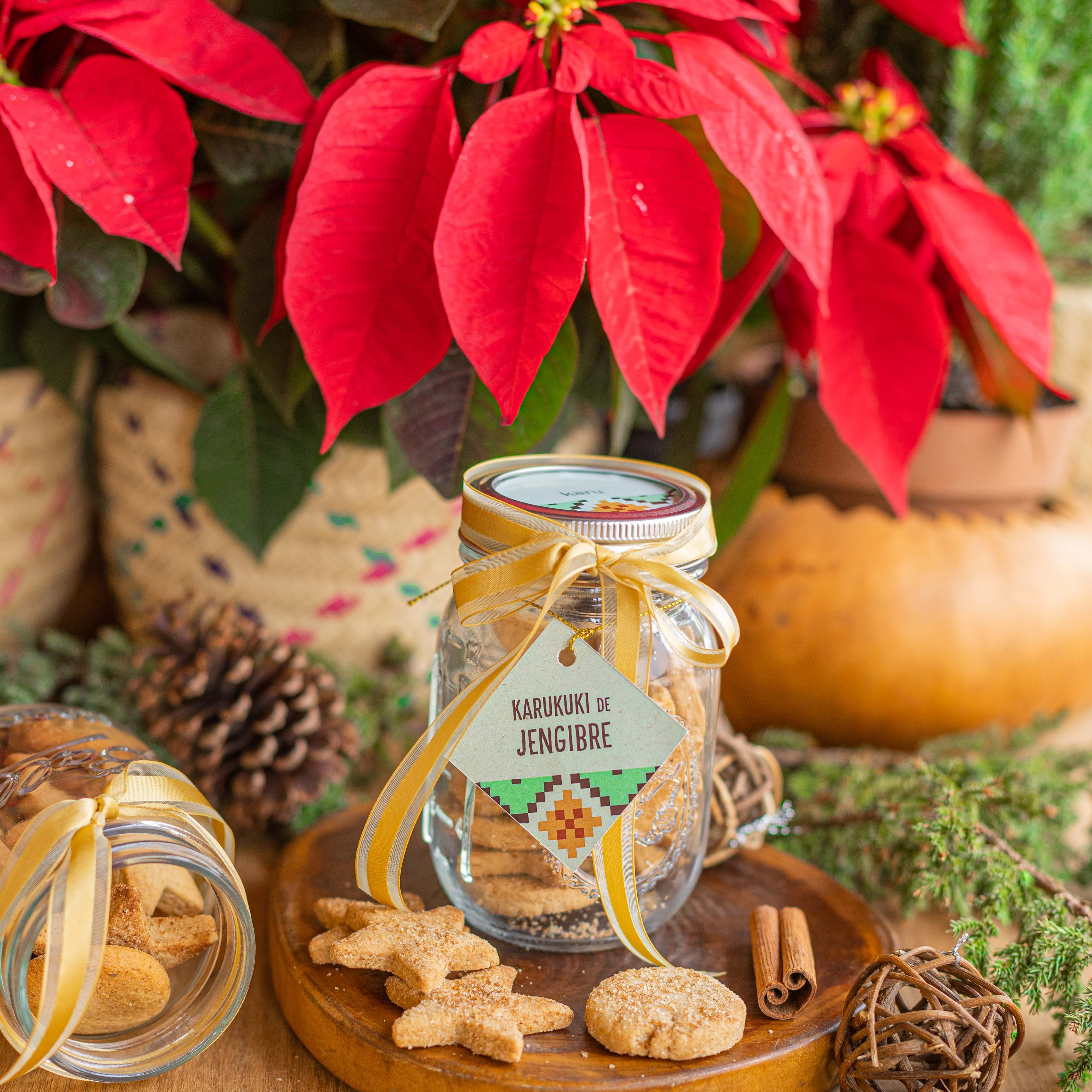 Ingredientes: Harina de trigo, bicarbonato de sodio, jengibre en polvo, canela, nuez moscada, clavo de olor, manteca, azúcar, huevo, miel de abeja y sal fina.